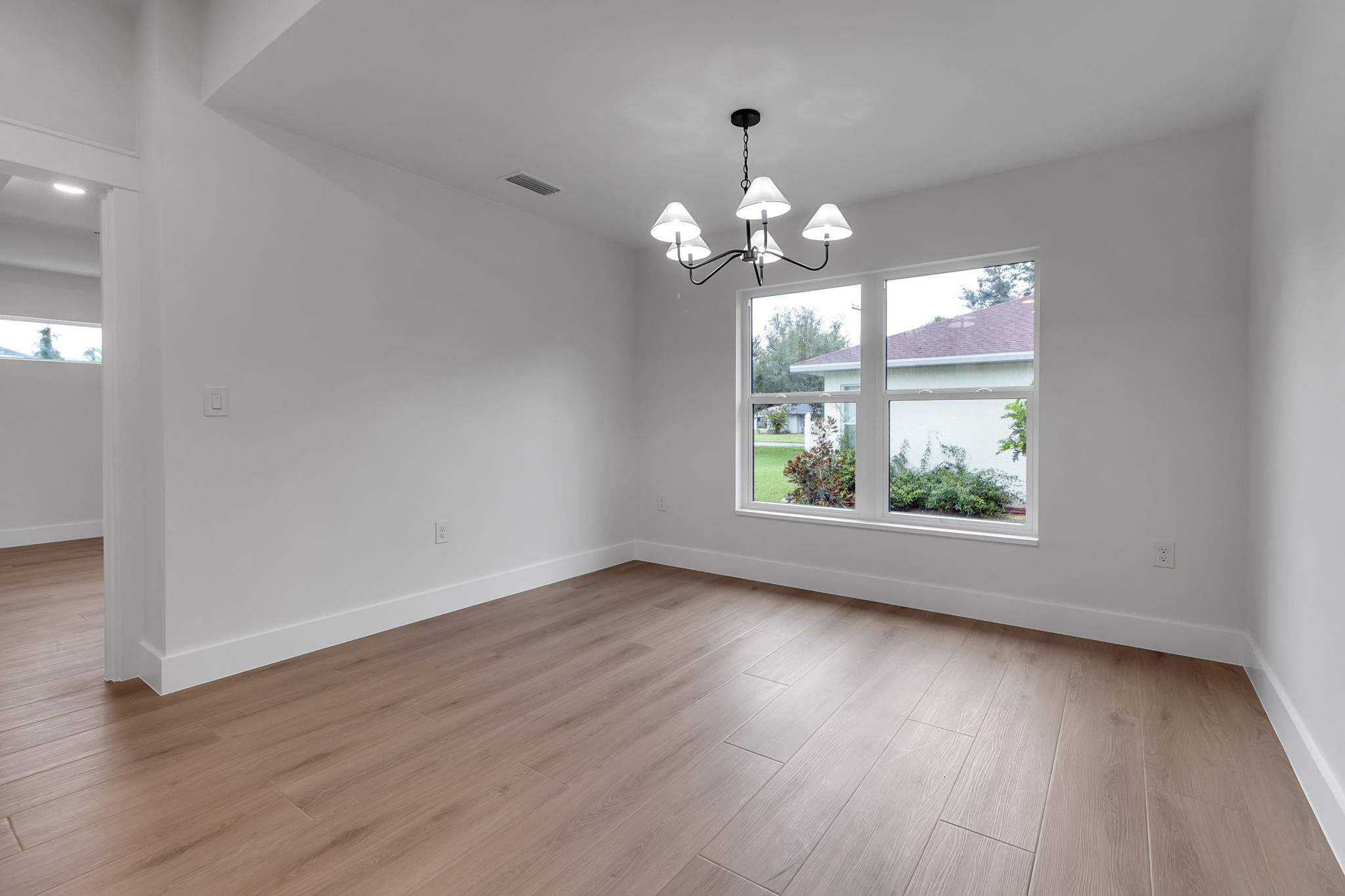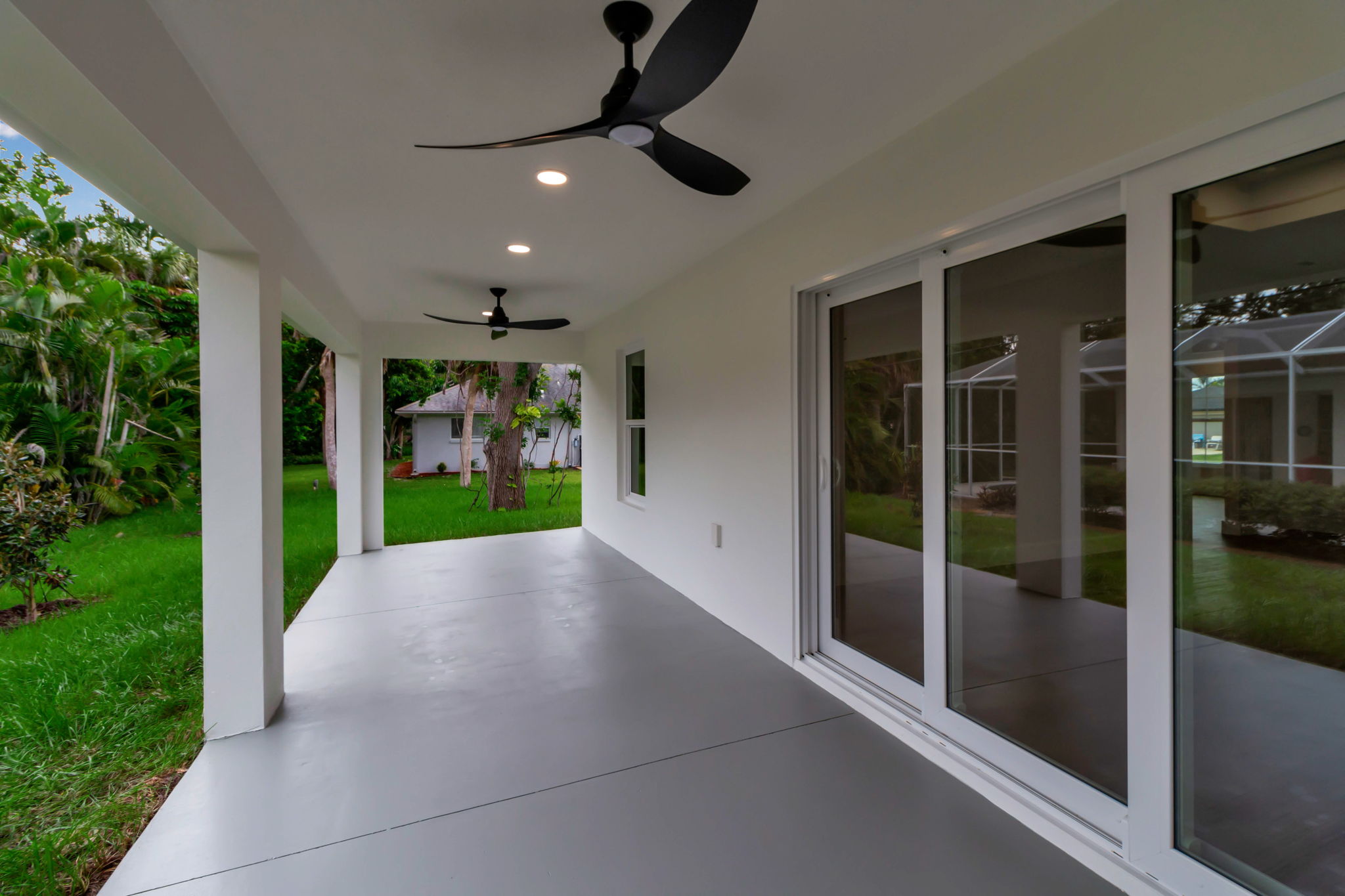 At the rear, large sliding glass doors open to a covered lanai, extending the living space outdoors. Whether for morning coffee, relaxing evenings, or entertaining friends, this area captures the essence of Florida living.